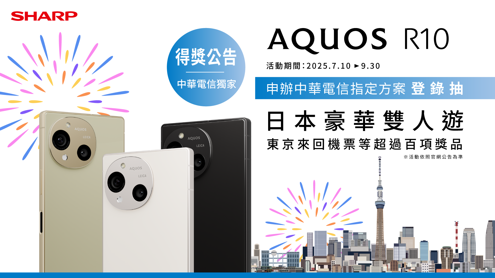 得獎公告【中華電信獨家】AQUOS R10 日本豪華雙人遊